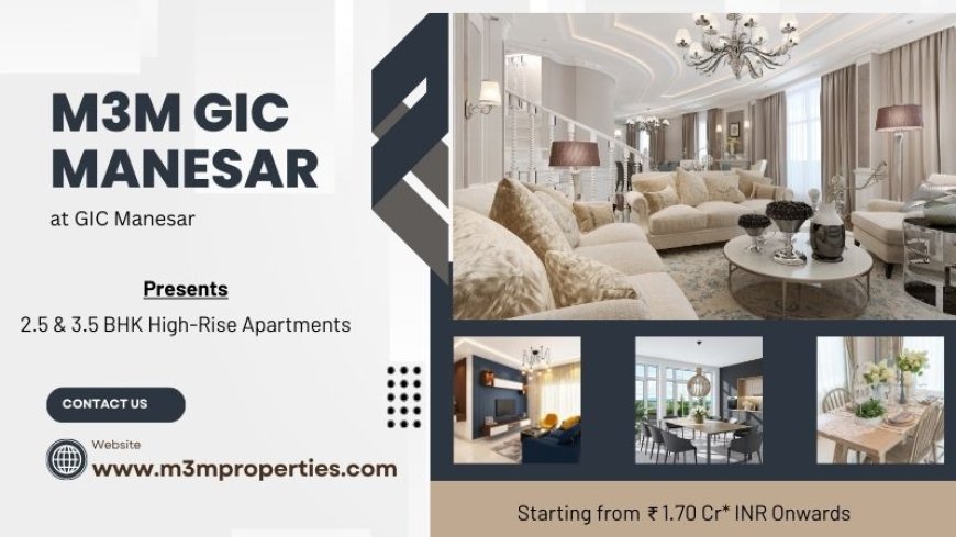 The Biggest transformation of Manesar begins now. Welcome to M3M GIC Manesar iconic GIC - The New City of Opportunities."Invest Smart. Live Smart. Future Smart, Manesar - India's next growth hub. Developing an urban ecosystem that blends growth, convenience, and long-term value is something only a few landmark projects can accomplish. Among the rising destinations transforming the region, the concept of this new-age integrated city stands out as a symbol of progress and smart planning. Its location, scale, and overall master vision position it as a place designed not just for living but for experiencing a complete lifestyle within one expansive environment. The blend of residential, business, and recreational clusters reflects a model inspired by global township structures, offering a future-ready way of life for modern families, entrepreneurs, and professionals. This project is envisioned to become a self-sustained locality where every lifestyle requirement—from homes and offices to entertainment, learning, and health facilities—is accessible within minutes.
